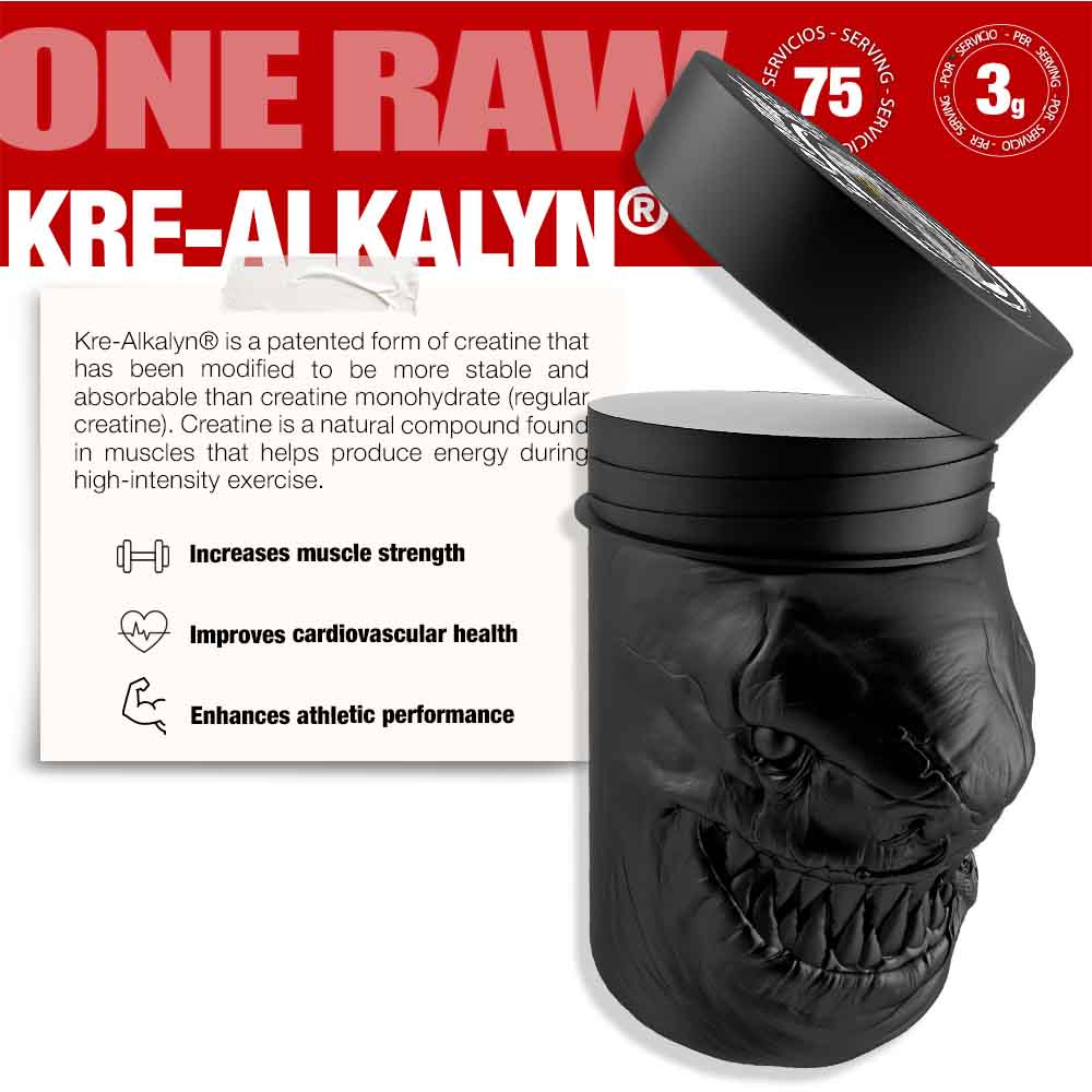 Kre-Alkalyn® 100% (monohidrato de creatina con pH corregido). / Kre-Alkalyn® 100% (pH corrected creatine monohydrate). Kre-Alkalyn® es una marca registrada de All American Pharmaceutical and Natural Foods Corporation (patente estadounidense #6,399,661). / Kre- Alkalyn® is a registered trade mark of All American Pharmaceutical and Natural Foods Corporation (US patent #6,399,661).